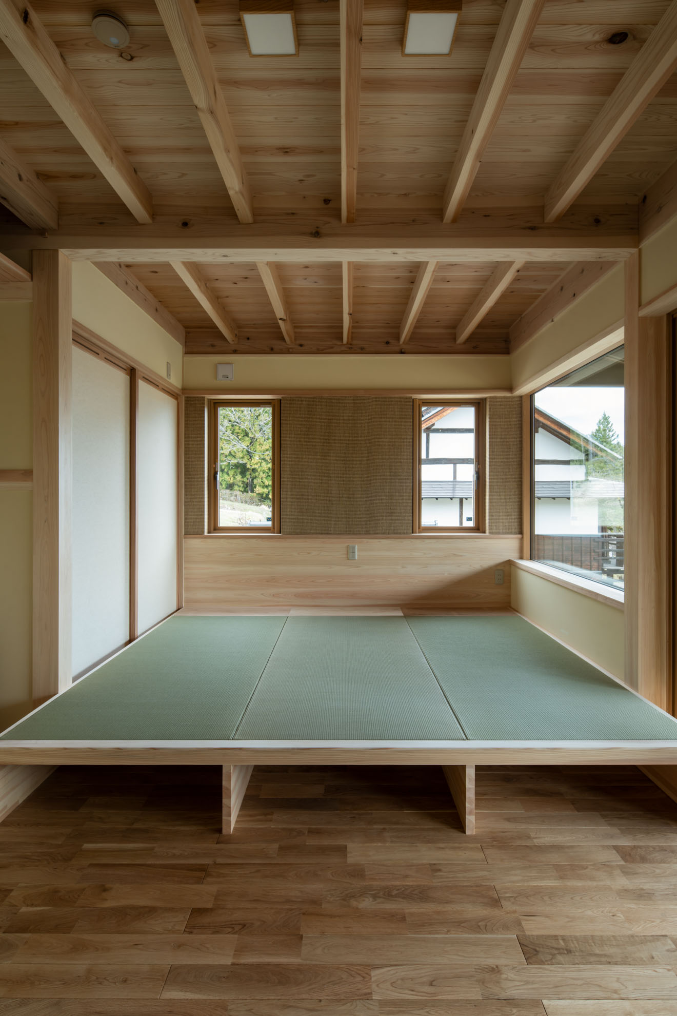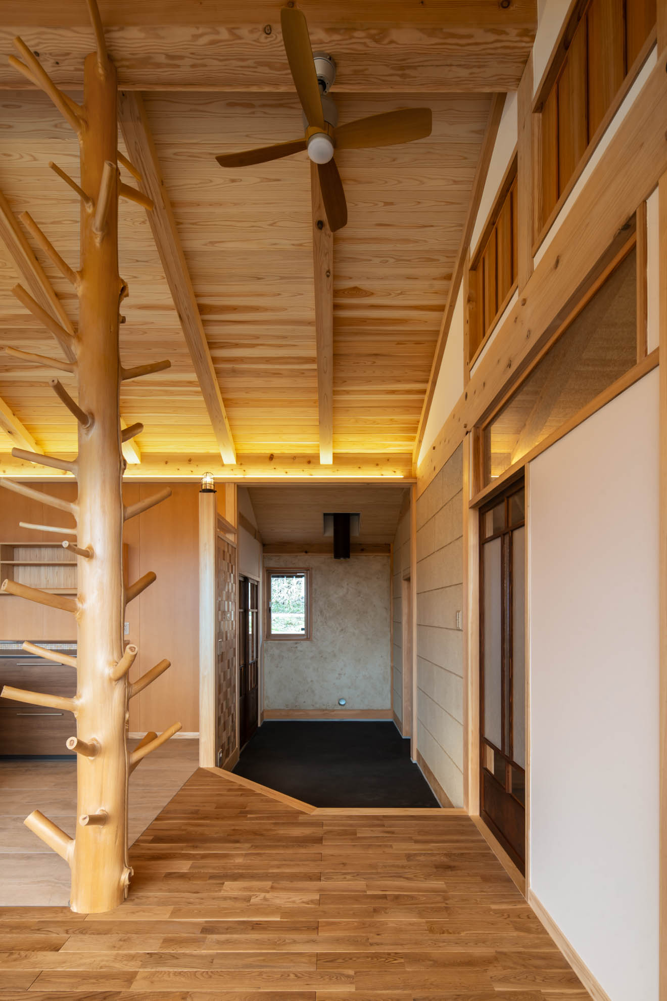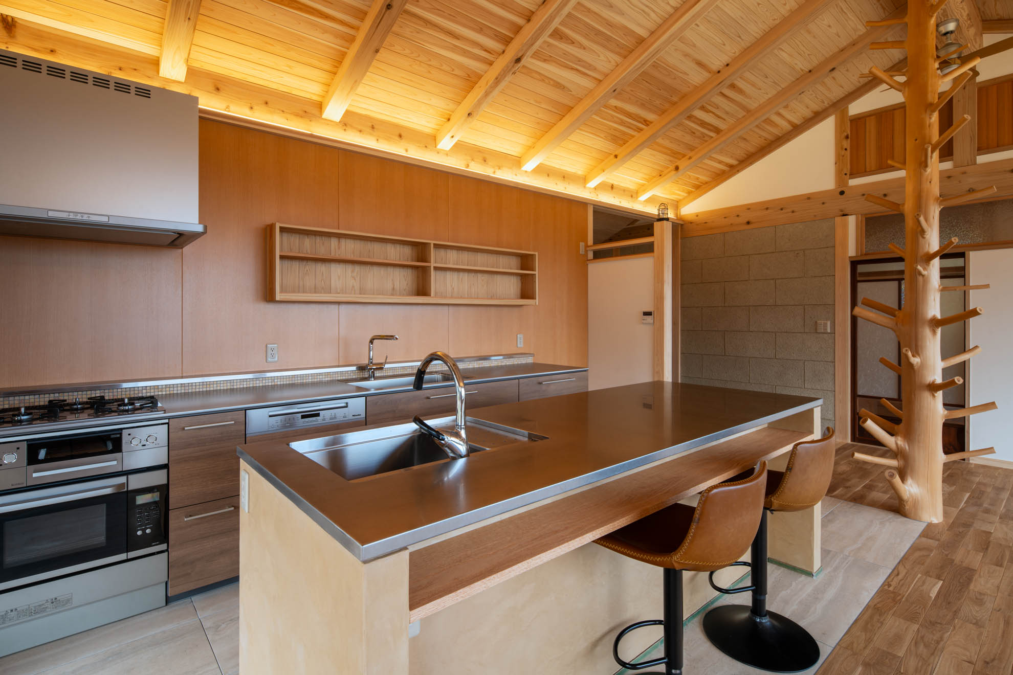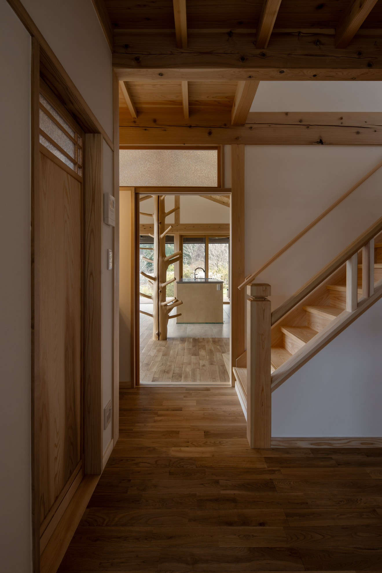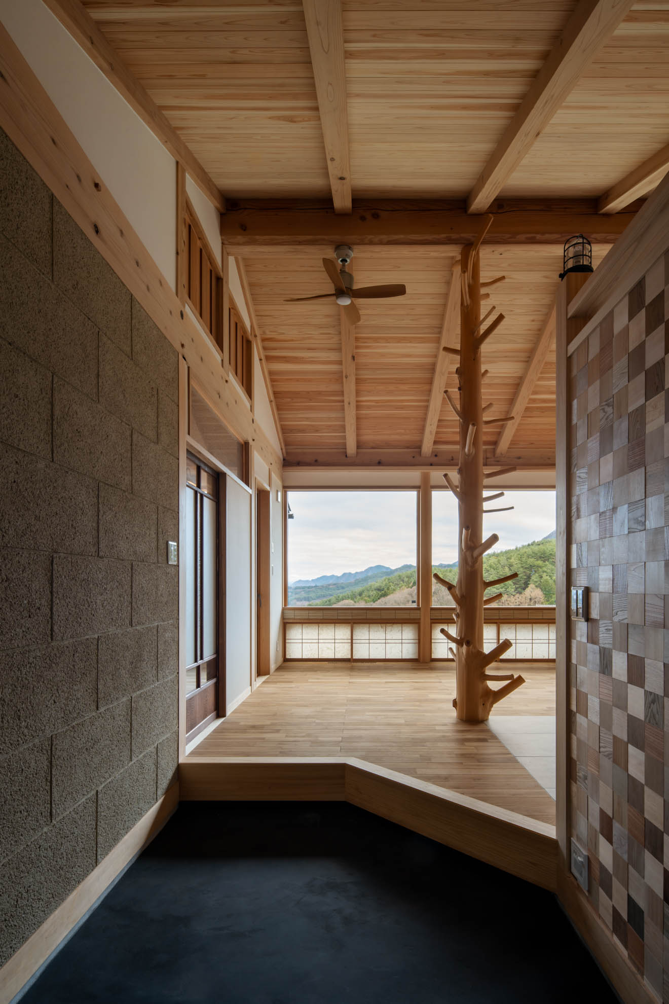 新築住宅:結の手 結の手プロジェクト 眼下に青木村の集落、その向こうに白い煙が立ち上る浅間山、遥かに八ヶ岳連峰、近くは夫神岳に子檀岳を望むという小高い場所に、能登から移住を決意したご夫婦のお家を作りました。私のホームページを見て「自然木を生かした設えが印象的だった」というお言葉に応え、今回もその枝付き丸太をLDKの真ん中に建物を支えるような形で創作してみました。イメージしたものを形にしていくというのはホントに楽しい仕事です。 Previous Post Next Post 関連リンク 2013年5月28日 はらぺこ青虫くん 2007年11月27日 猫と暮らす家 2025年2月10日 東御市 Qさんの家 安藤建築設計工房の仕事 一覧を見る 一覧を見る 一覧を見る 一覧を見る まずは住まいのQ&Aをご参照ください。 お問い合わせはお気軽に!