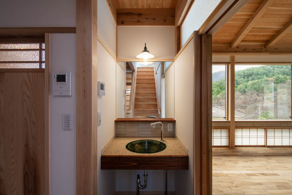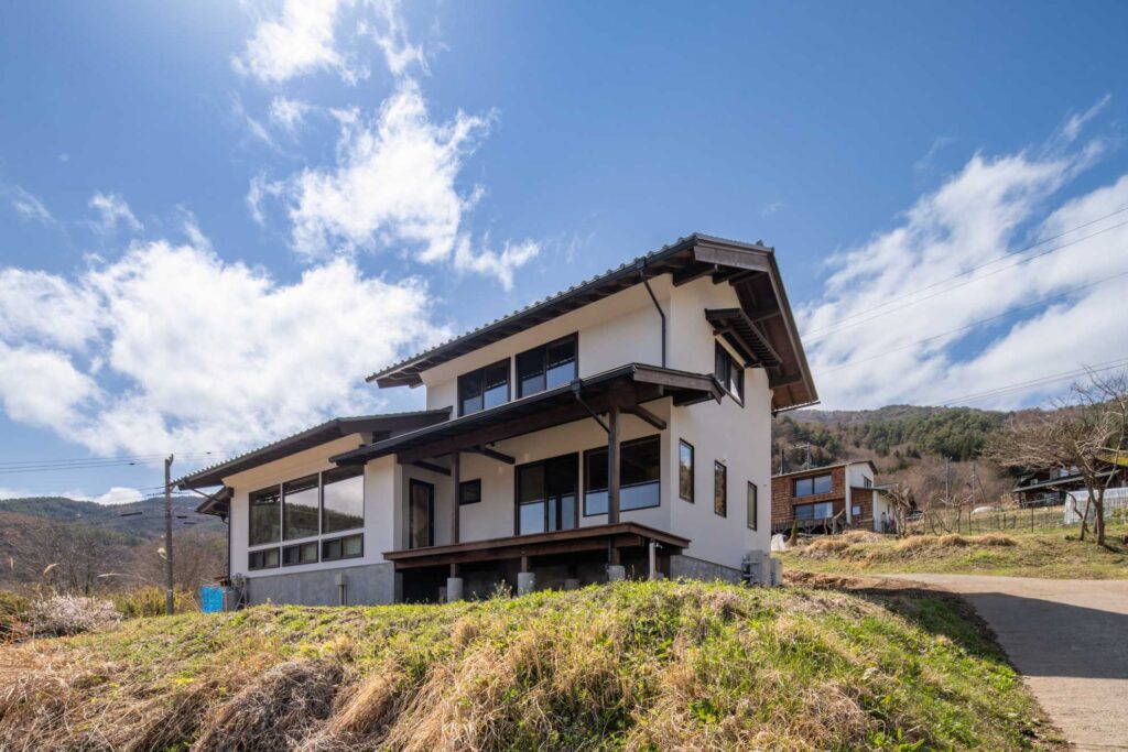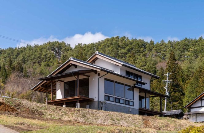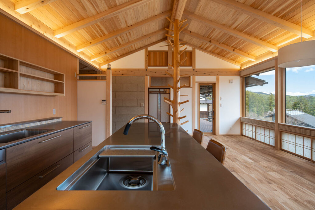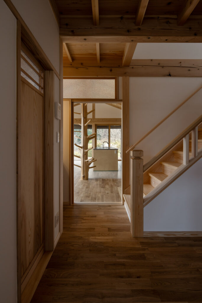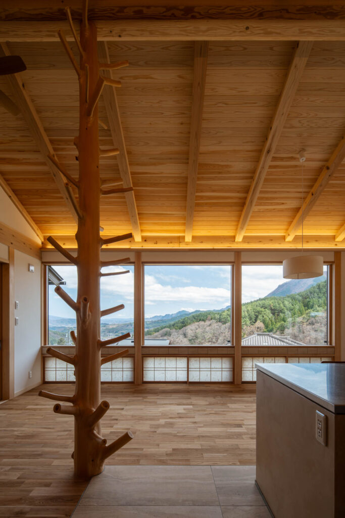 新築住宅:結の手 結の手プロジェクト 眼下に青木村の集落、その向こうに白い煙が立ち上る浅間山、遥かに八ヶ岳連峰、近くは夫神岳に子檀岳を望むという小高い場所に、能登から移住を決意したご夫婦のお家を作りました。私のホームページを見て「自然木を生かした設えが印象的だった」というお言葉に応え、今回もその枝付き丸太をLDKの真ん中に建物を支えるような形で創作してみました。イメージしたものを形にしていくというのはホントに楽しい仕事です。 Next Post 関連リンク 2024年3月29日 枝付き丸太 2012年1月3日 山梨の家 2013年5月28日 はらぺこ青虫くん 安藤建築設計工房の仕事 一覧を見る 一覧を見る 一覧を見る 一覧を見る まずは住まいのQ&Aをご参照ください。 お問い合わせはお気軽に!
