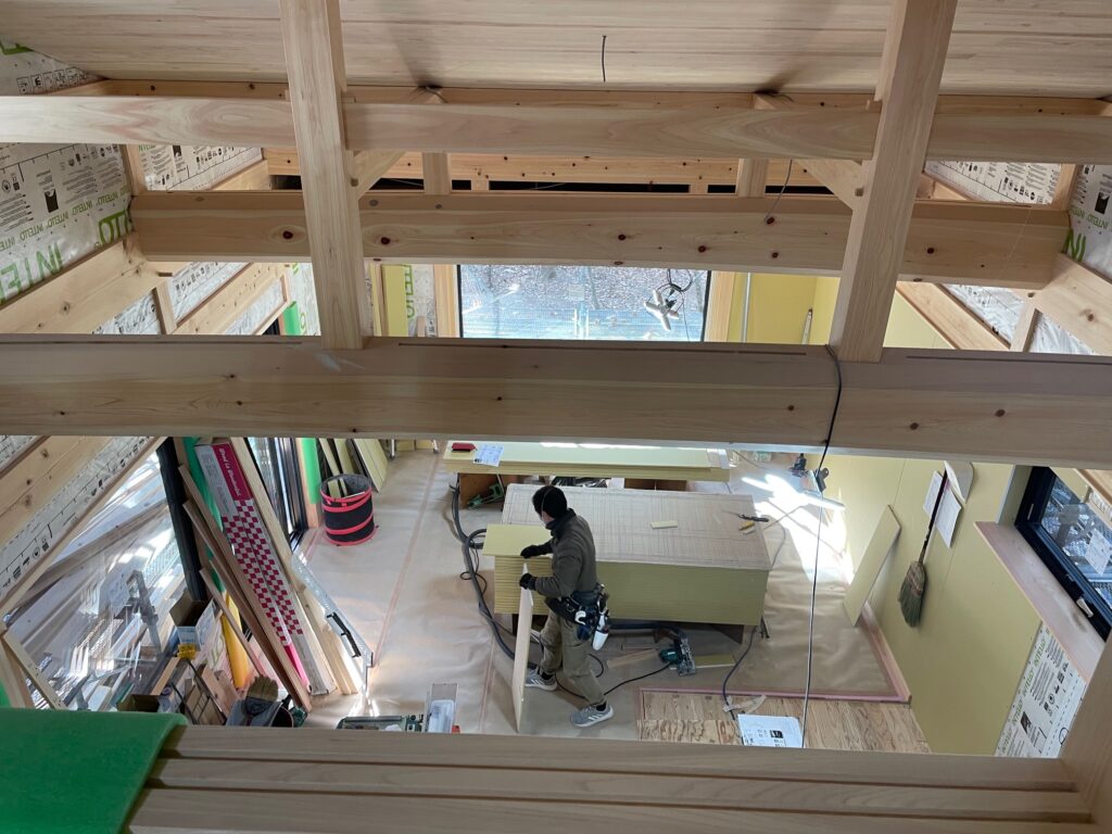 来月からは左官工事が始まりますが、この気温では外壁の作業はもう少し先になりそうです。こうした手仕事を大切にする伝統的な工法は、時間短縮とは無縁の世界で、木材の伐採期を含め、季節との対話の中で進んでいきます。